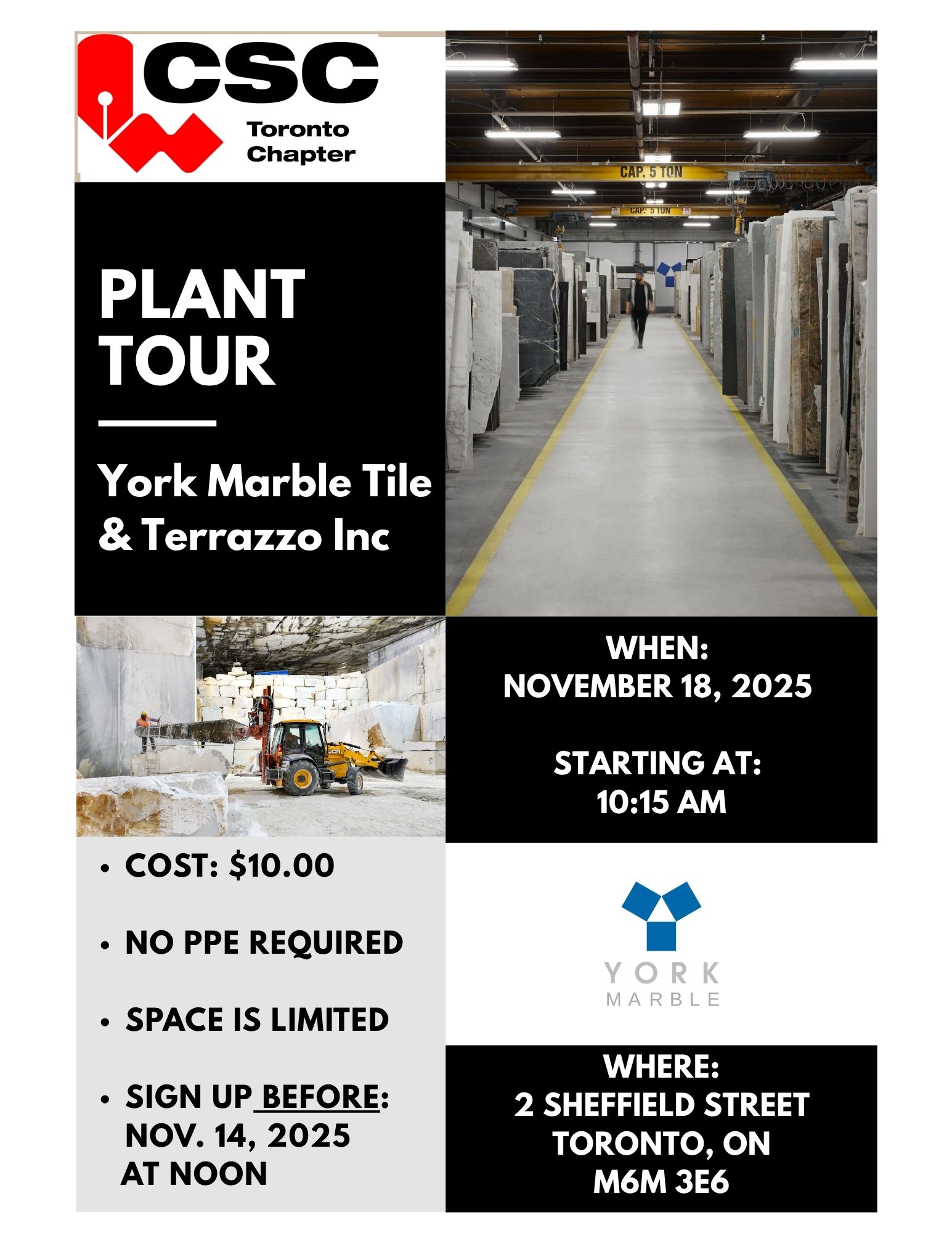 Come join CSC Toronto Chapter for a tour of York Marble's facilities.York Marble is a top