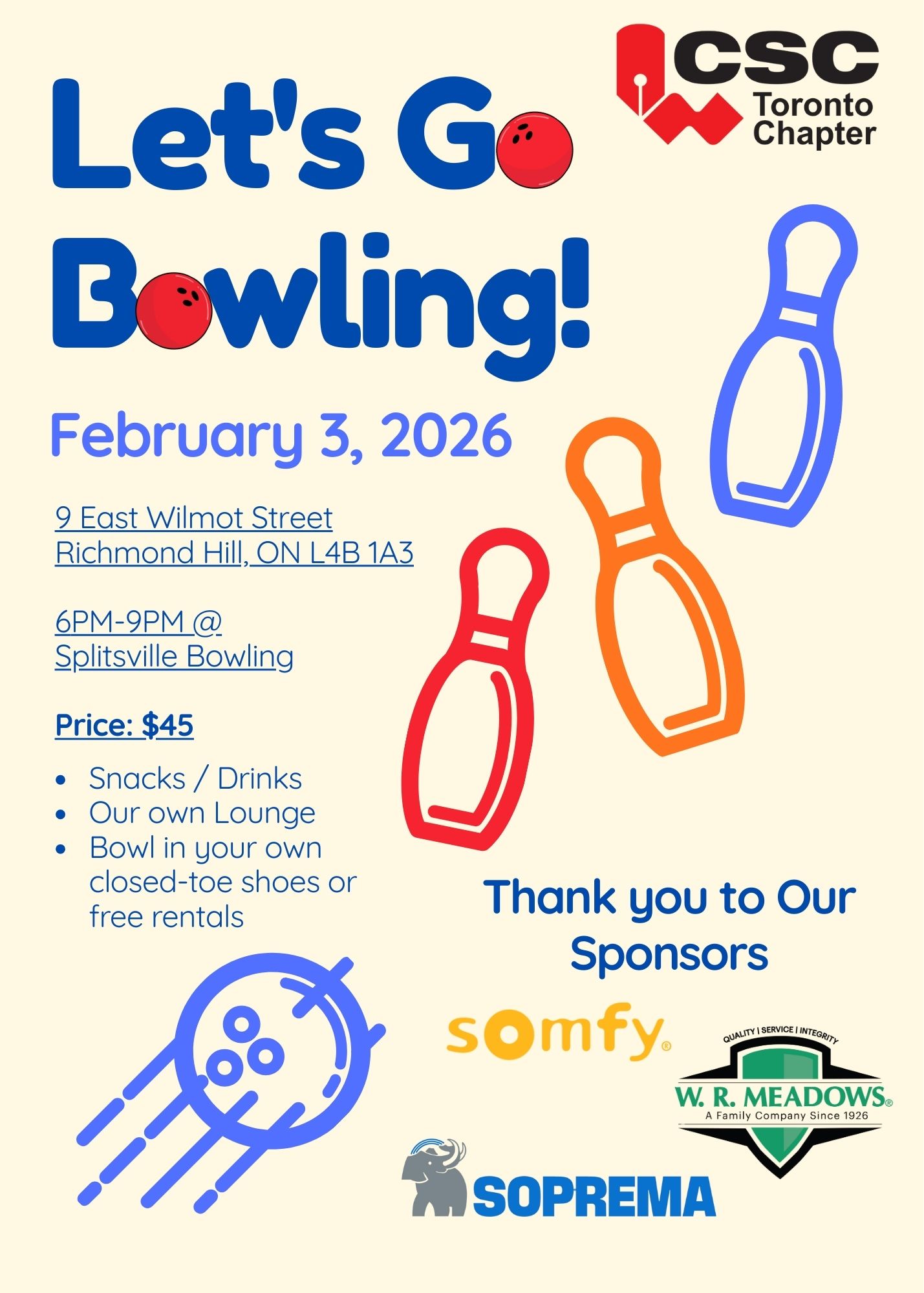 Get ready to knock down some pins and strike up new friendships at the CSC Toronto Chapter
